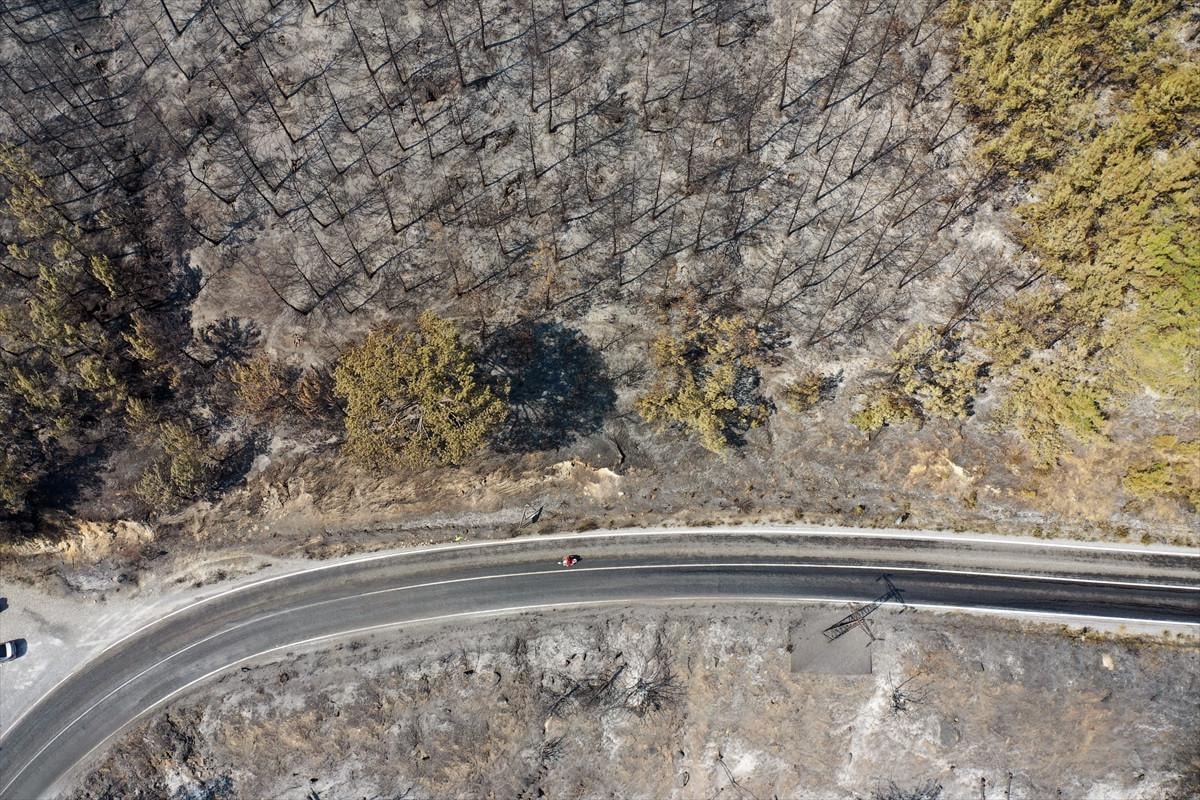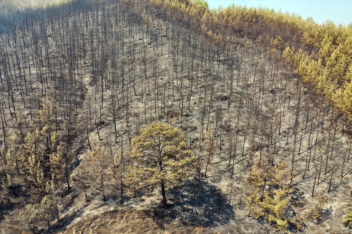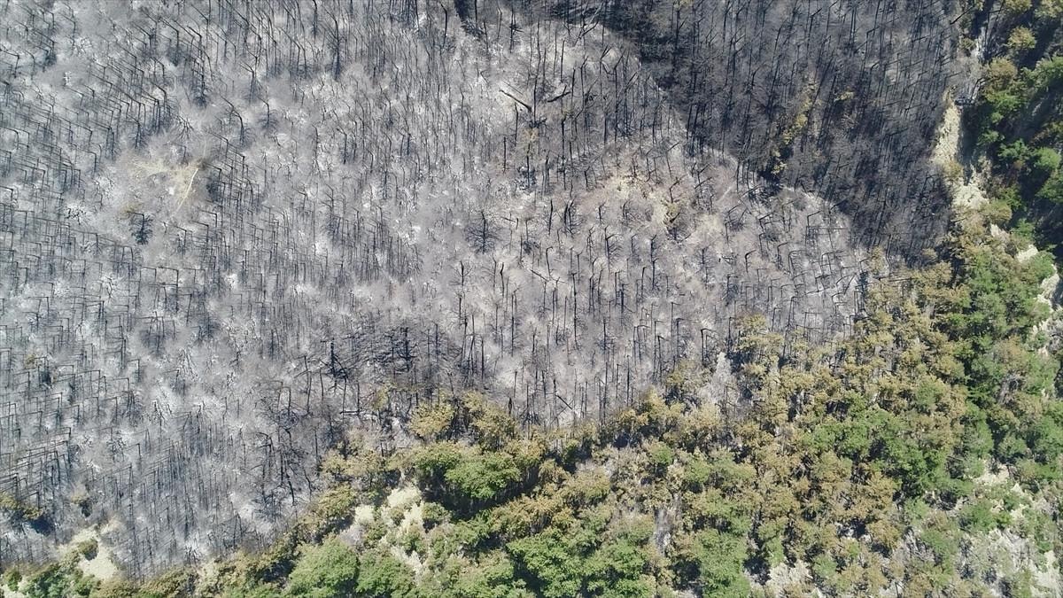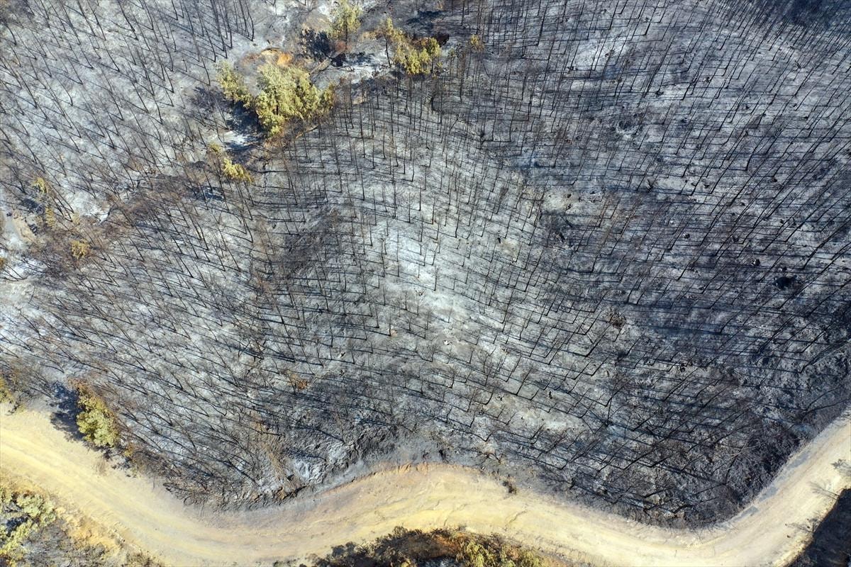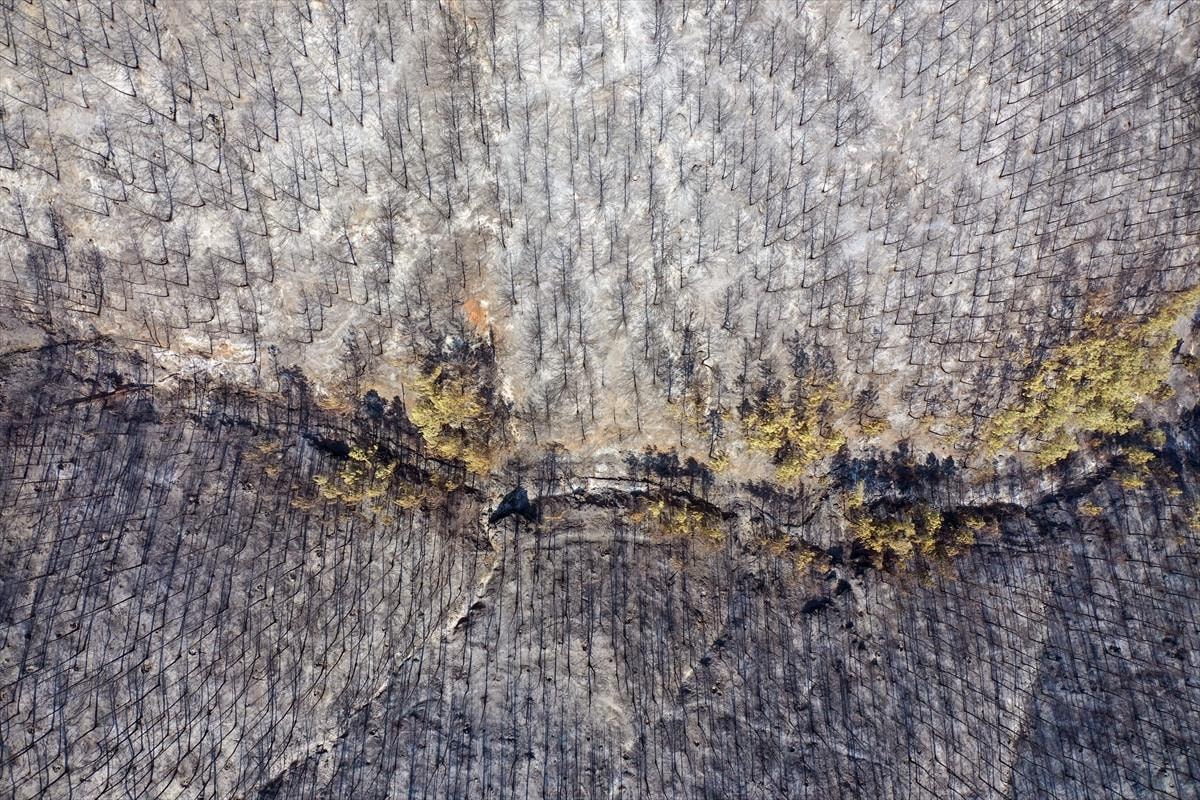 Aydın'daki orman yangınında yanan alanlar görüntülendi.