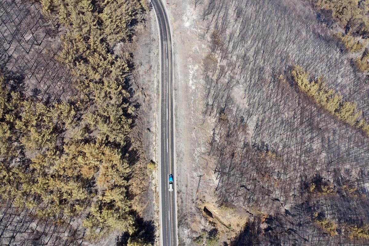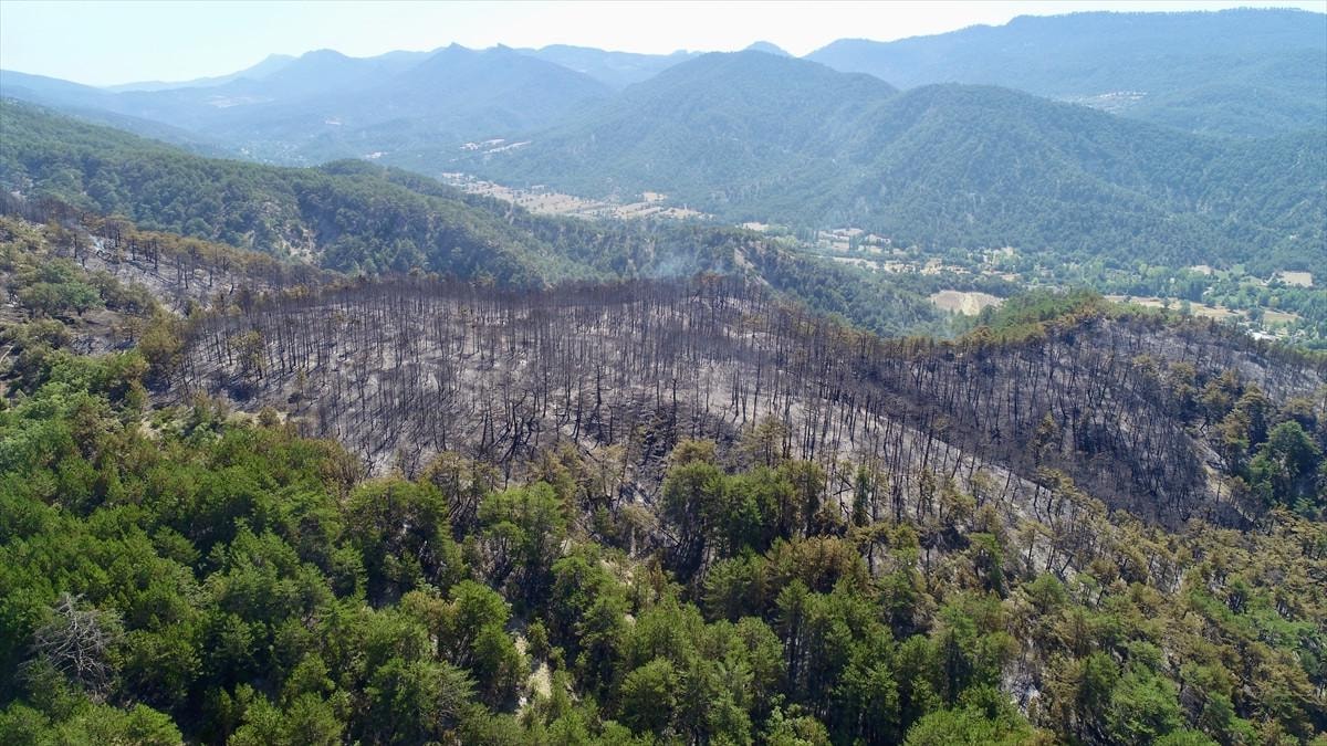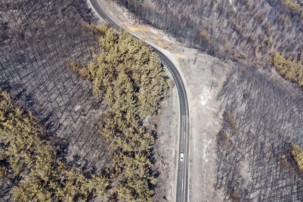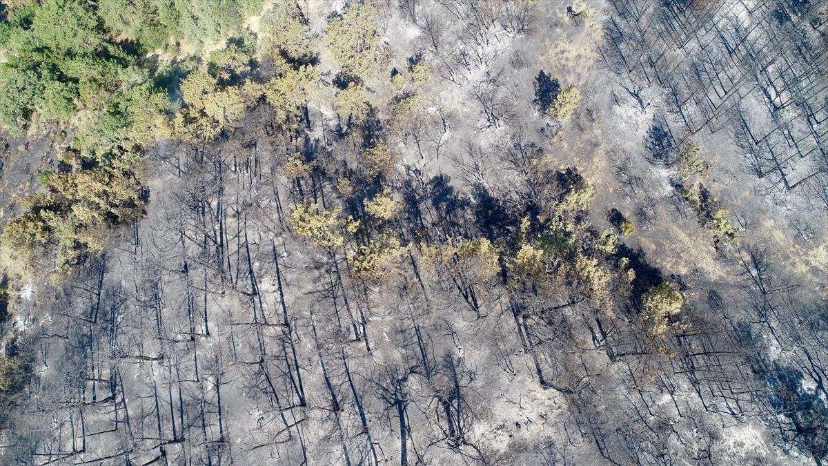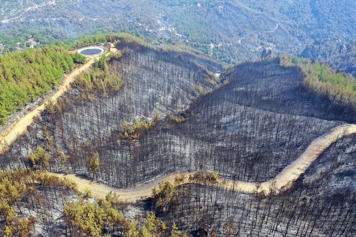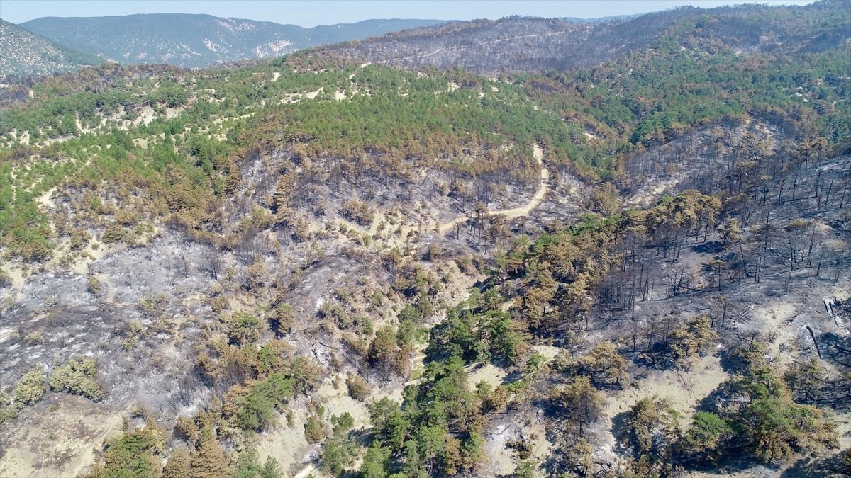 Aydın'daki orman yangınında yanan alanlar görüntülendi.
