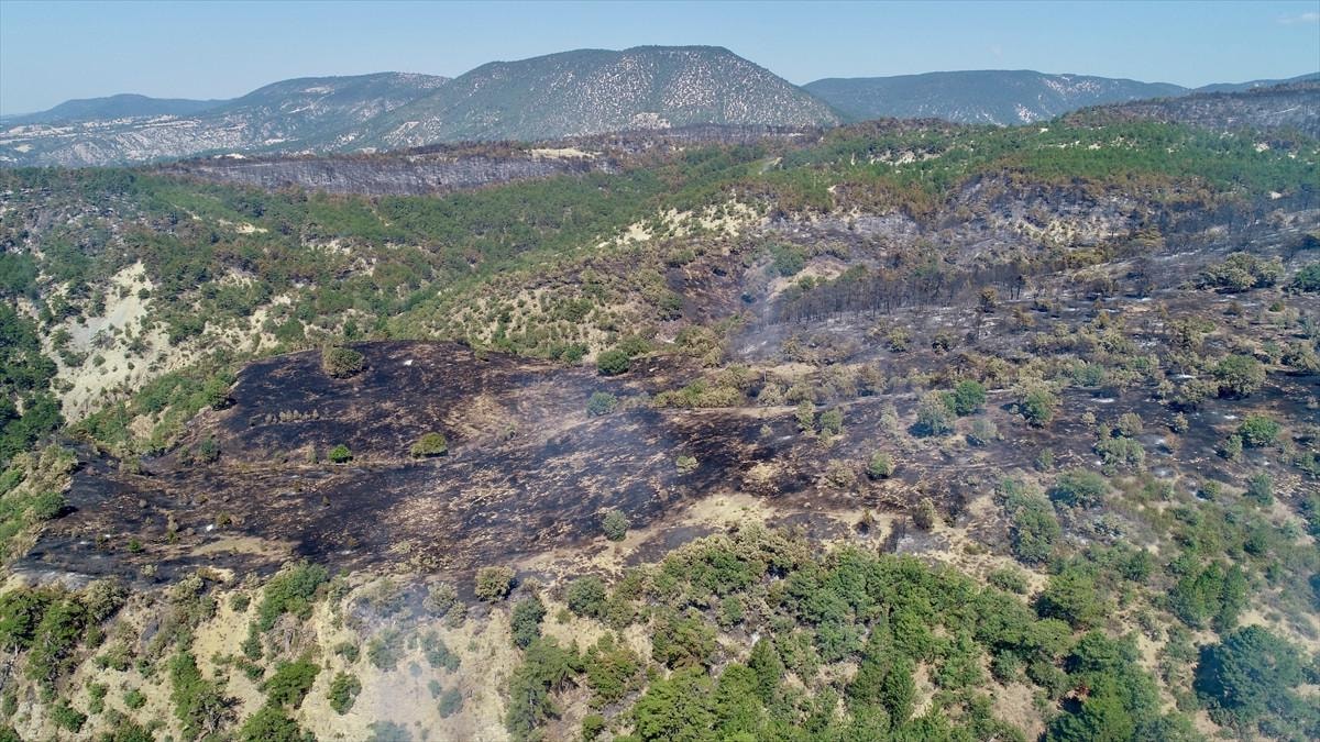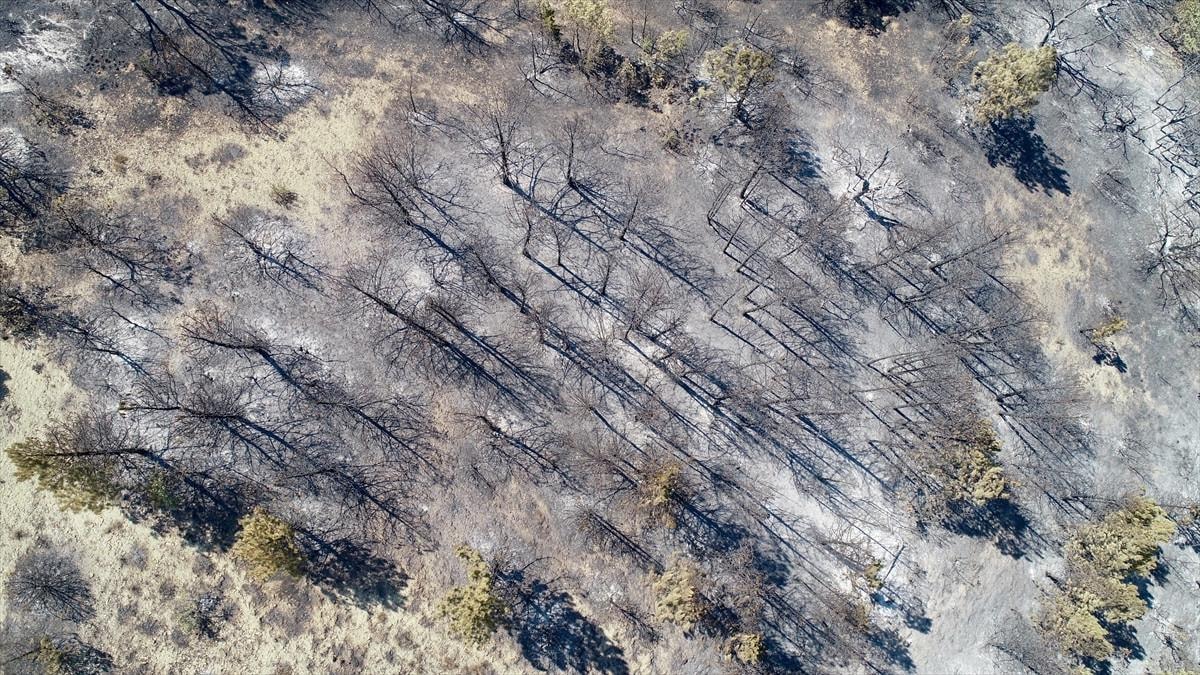 Bolu'da orman yangınında zarar gören alanlar havadan görüntülendi.