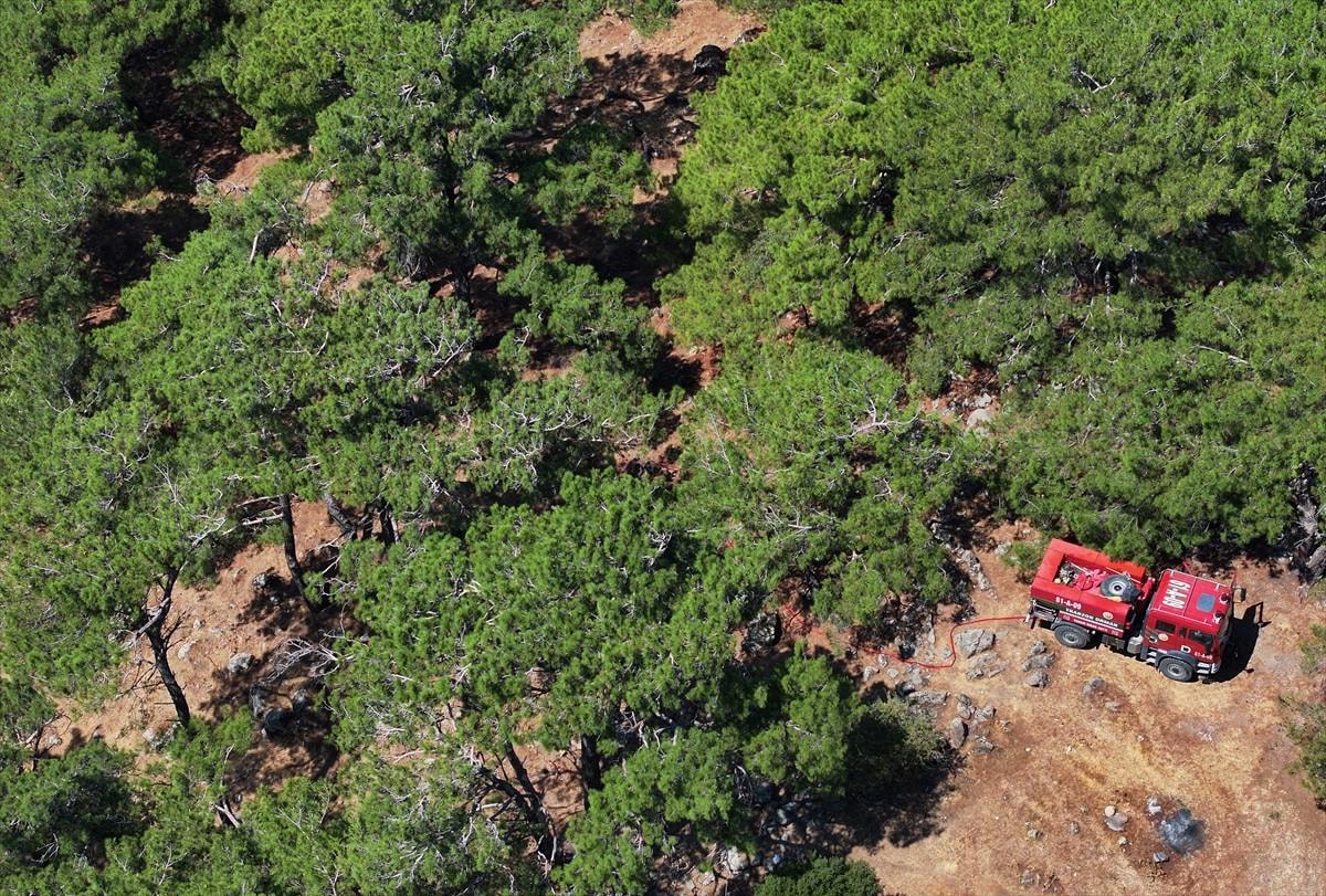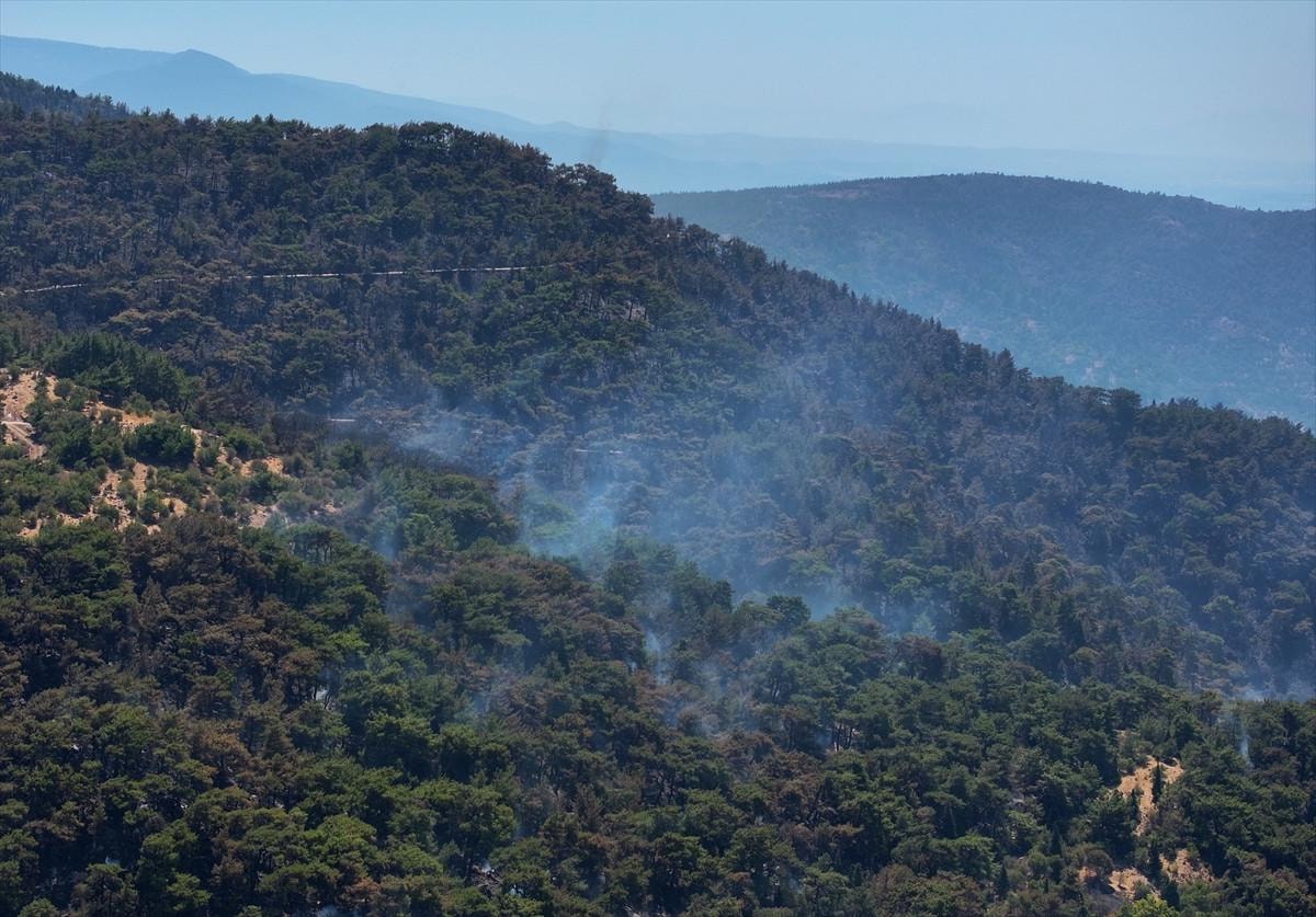 Yangın bölgesinde helikopter ve yer ekipleri soğutma işlemlerine devam ediyor.