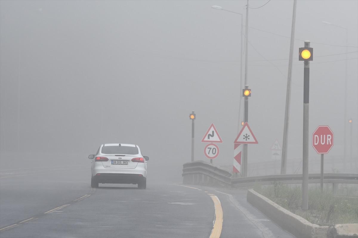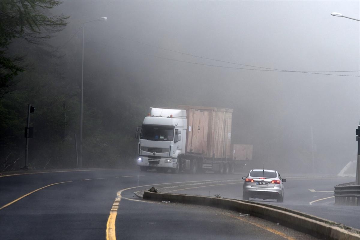 D-100 kara yolunun Bolu Dağı geçişinde sis, ulaşımı olumsuz etkiledi.