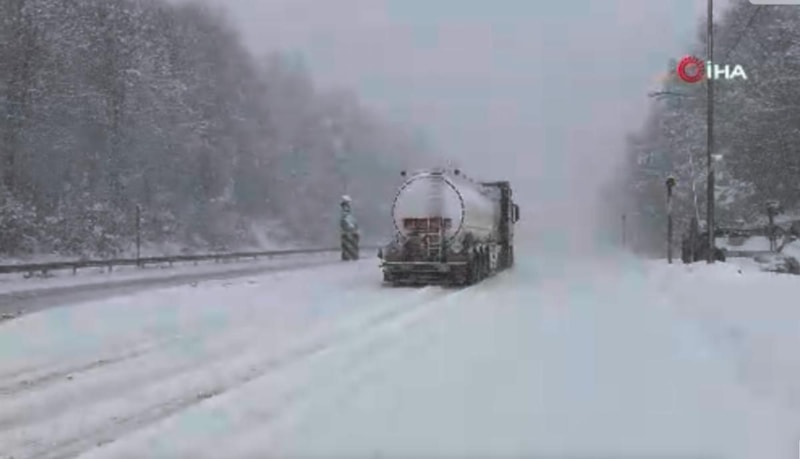 D-100 karayolunun Bolu Dağı geçişinde yoğun kar yağışı etkili oluyor.