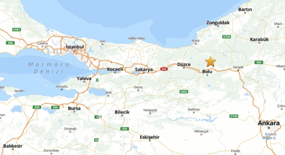 Bolu merkezde saat 01.03'te 4.2 büyüklüğünde deprem oldu.