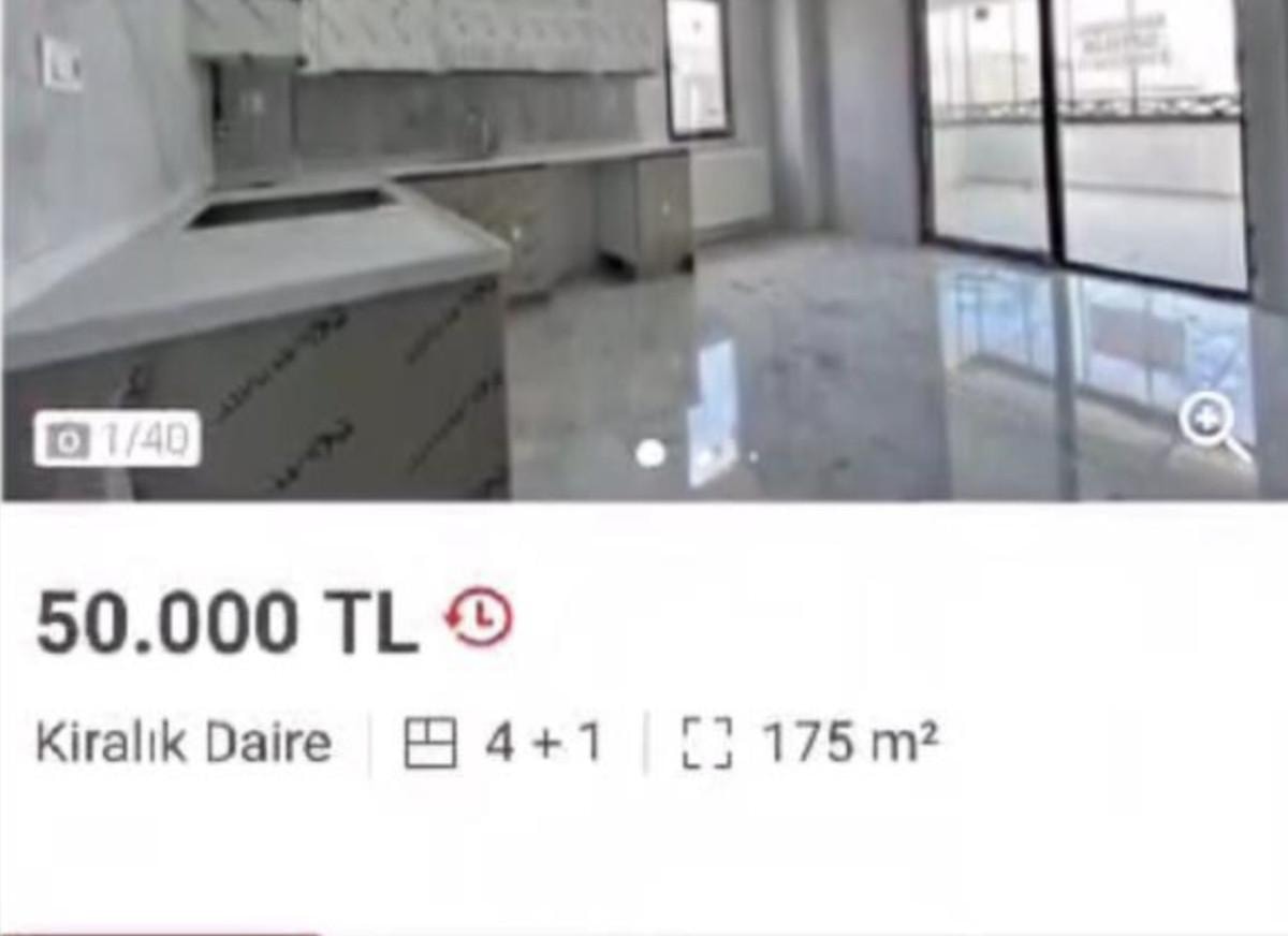 Bolu'da Alpagut Mahallesi'nde yeni yapılan bir binanın 3. katında bulunan 4+1 ve 175 metrekare olan daireye 50 bin lira kira fiyatı istenerek ilan yayınlandı.