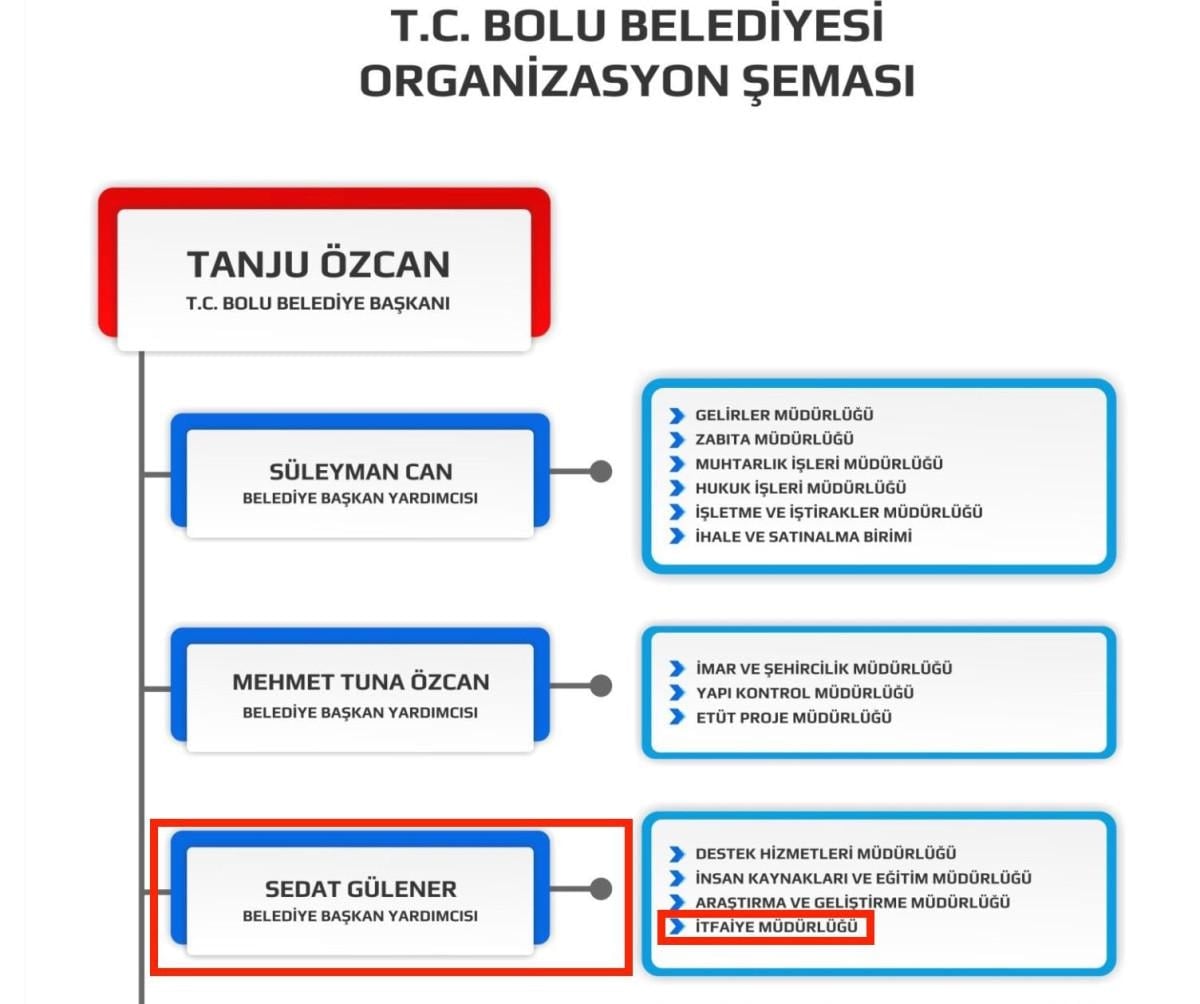 Bolu Belediye Başkanı Tanju Özcan'ın, Bolu İtfaiye Müdürlüğü'nü, Belediye Başkan Yardımcısı olarak atadığı dayısının oğlu Sedat Gülener'e bağladığı ortaya çıktı.