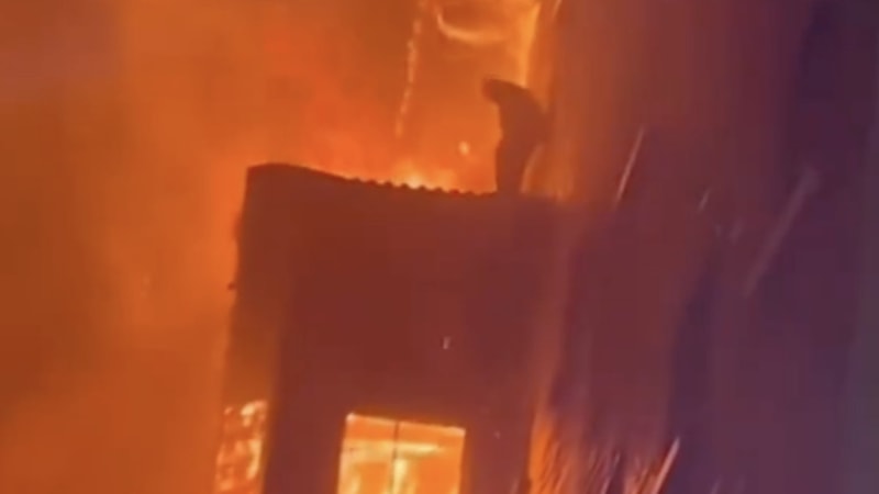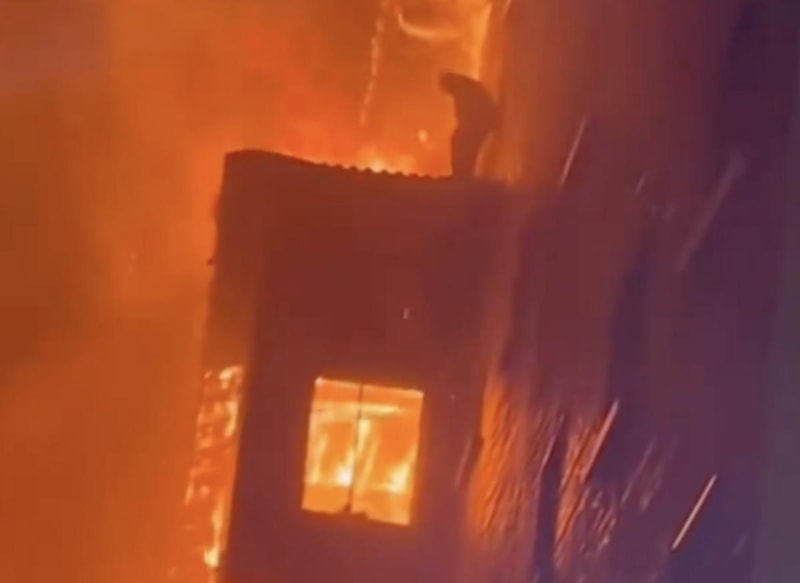 Yangın esnasında çatıya çıkarak kurtulmayı bekleyen adamın çaresiz halleri, vatandaşların kamerasına yansıdı.