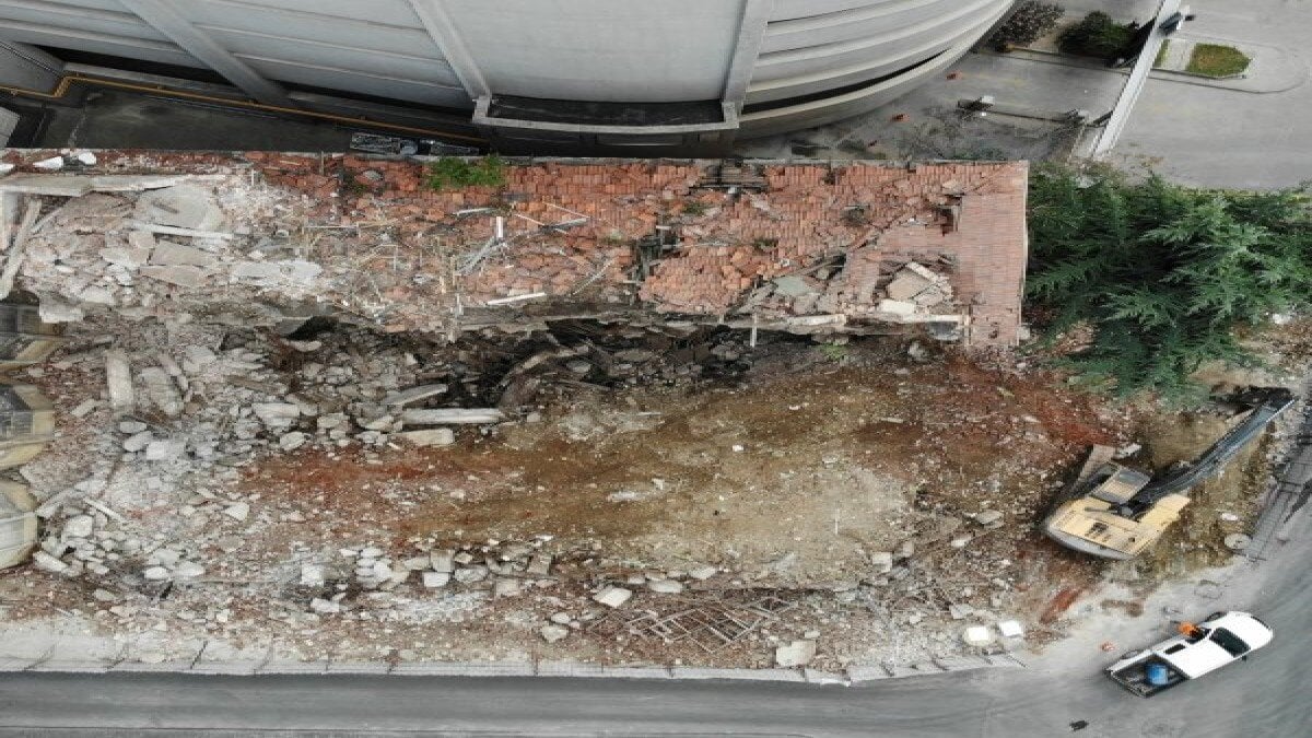 Atıl halindeki binasında 6 gün önce yangın meydana gelen fabrikanın yıkım çalışlarına başlandı. Dün başlanan çalışmalar drone ile havadan görüntülendi. 2 hafta içerisinde bitirilmesi planlanan yıkım sonrası içerisinde mescit, yurt ve otopark olacak dini kültür merkezinin yapımının başlaması bekleniyor.