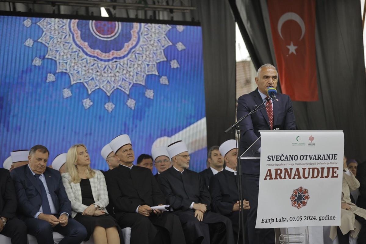 Açılış töreninde konuşan Bakan Ersoy, caminin 1590’lı yıllarda Bosna Hersek’e kazandırıldığını ancak 1992-1995 yılları arasındaki savaş sırasında tamamen yıkıldığını ifade etti.