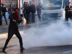 Yüzleri kapalı marjinal örgüt mensuplarının polise taş ve molatofla karşılık vermesi dikkatlerden kaçmadı.