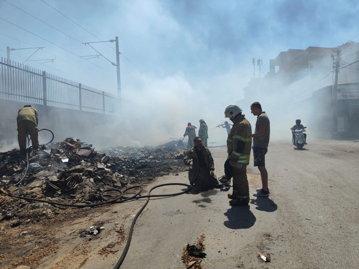 Buca'nın Seyhan Mahallesi hat boyunda, çöp ve sanayi atıklarının biriktiği alanda yangın çıktı.