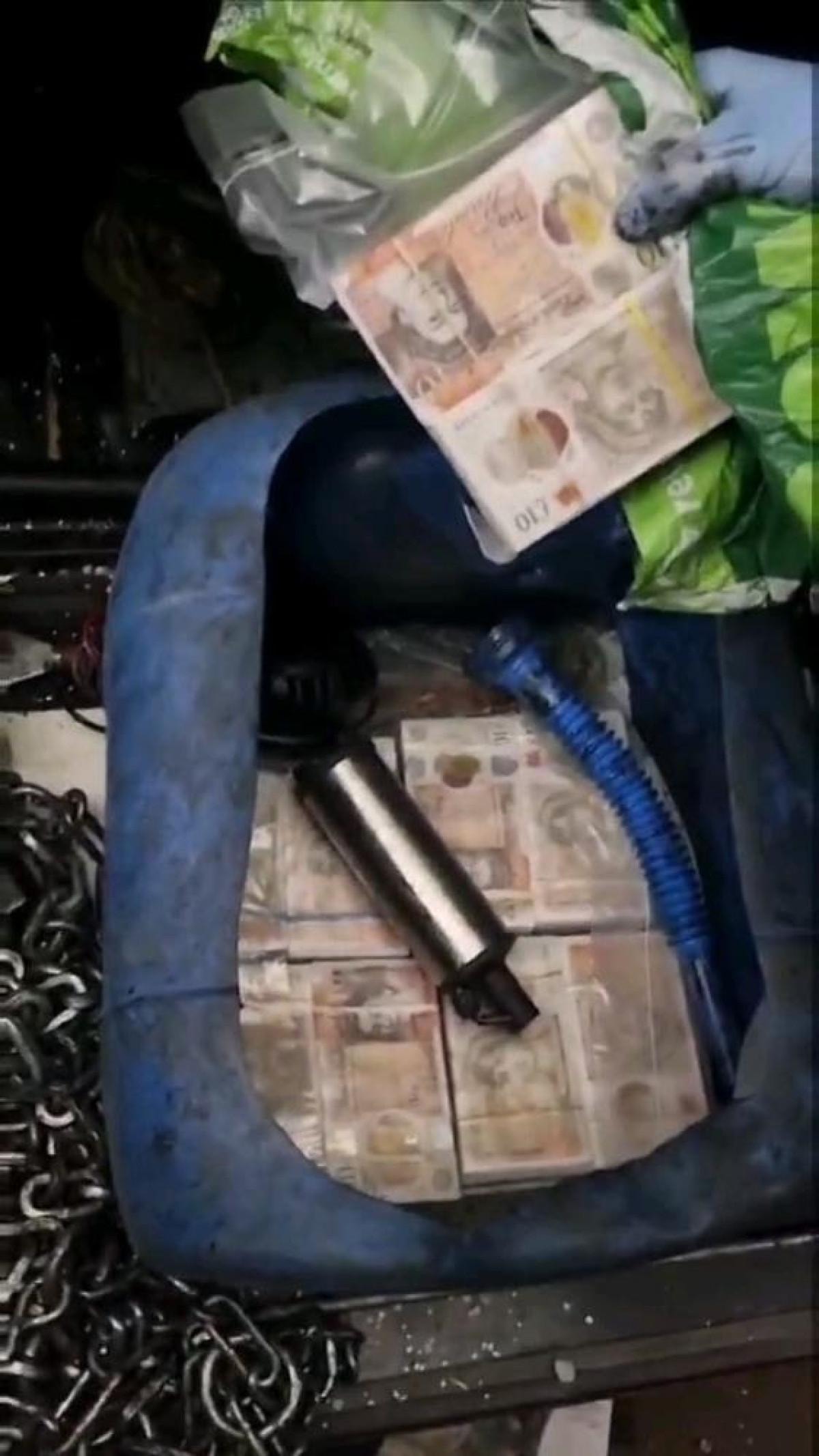 Banknotların bir kısmı kauçuk bir iç tabanın altına, diğer kısmı ise kilolarca bulunan demir zincirlerin altına gizlenmişti.