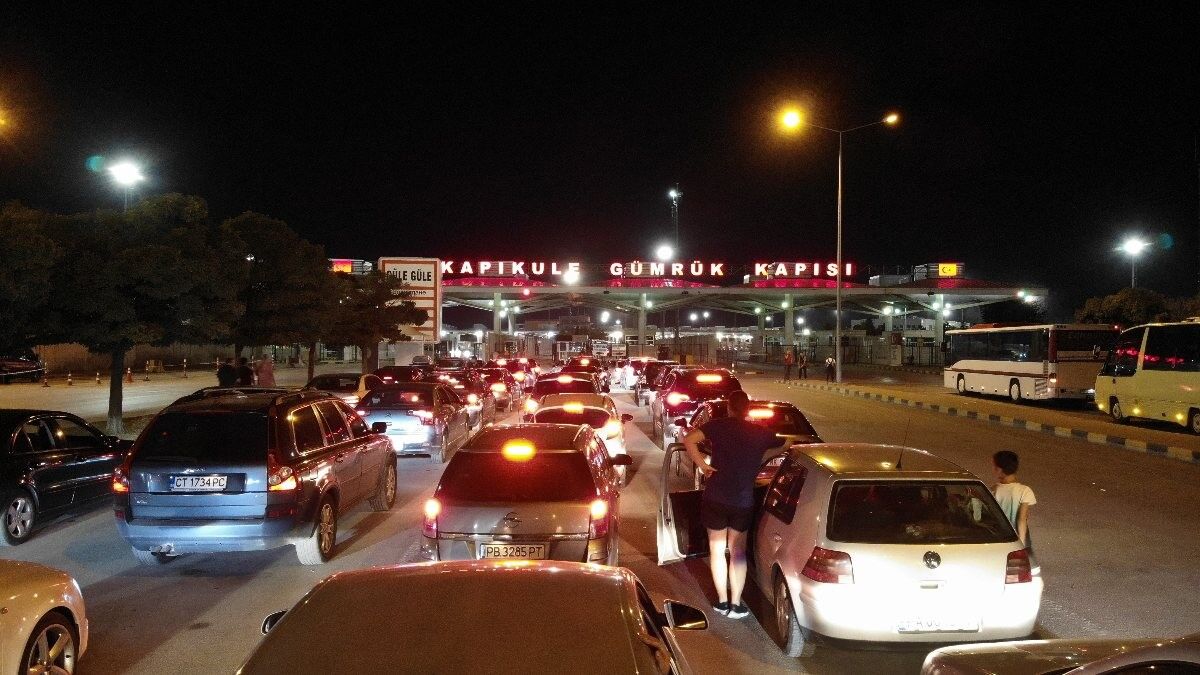 Komşu ülke Bulgaristan'a açılan Kapıkule Sınır Kapısı'nda Bulgarlar uzun araç ve otobüs kuyruğu oluşturdu.