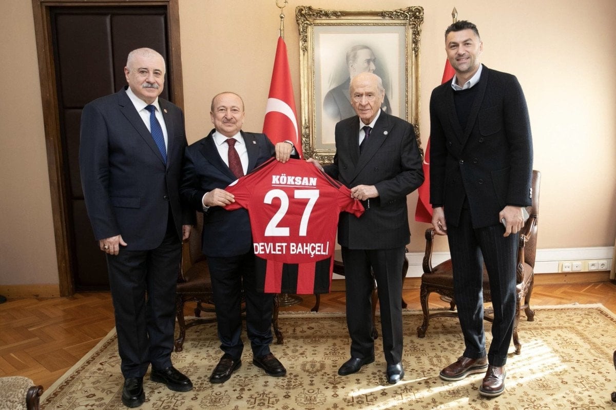 Gaziantep FK Başkanı Memik Yılmaz ve teknik direktörü Burak Yılmaz, Bahçeli'yi ziyaret etti.