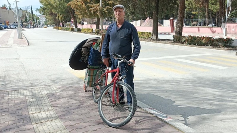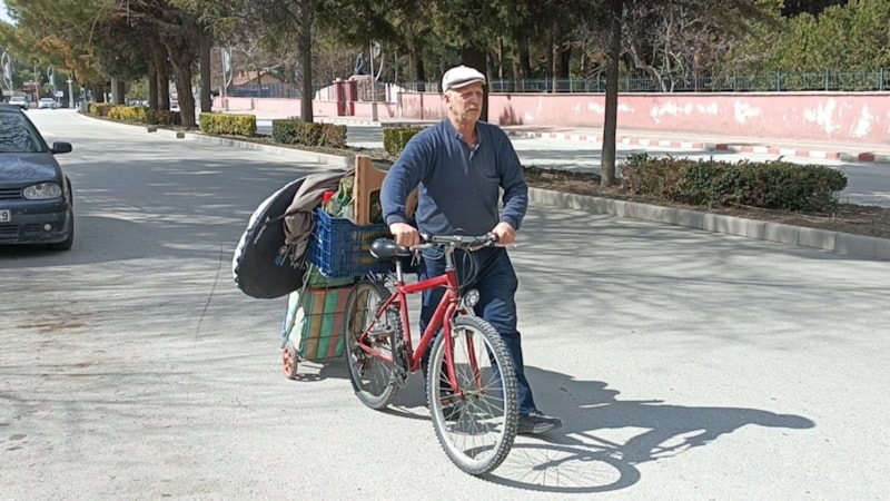 Ardından bisikletine malzemelerini yükleyen Orhan Yıldırım, kira artışını protesto için önce Adalet Bakanlığına, ardından Cumhurbaşkanlığı Külliyesi'ne gideceğini belirtti.