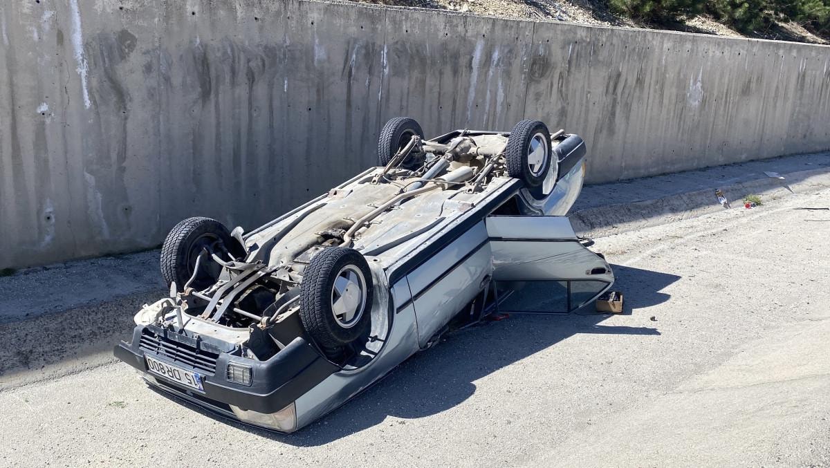 Kontrolü kaybedilen araç, yoldan çıkarak şarampole devrildi.