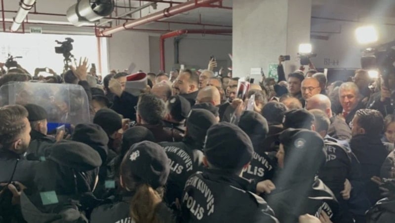Belediye meclisinde yapılacak başkan vekili seçimi öncesi CHP'liler ile polis arasında arbede yaşandı.