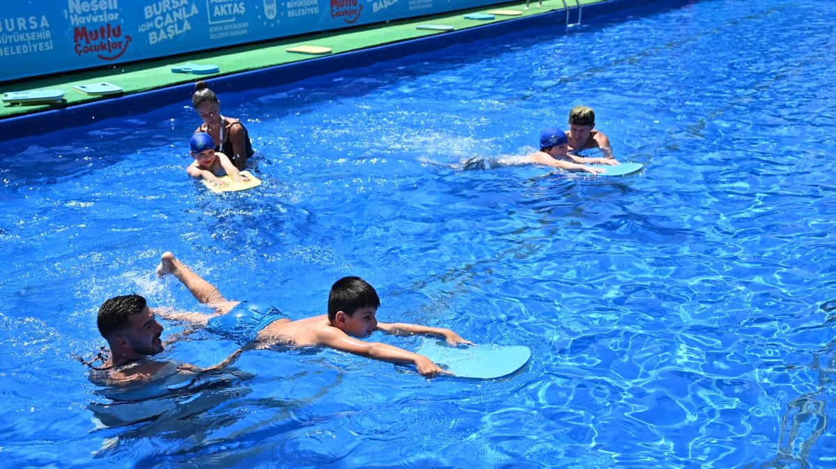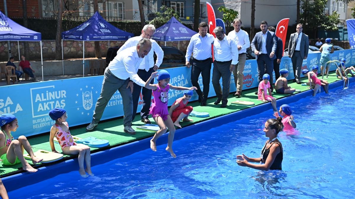 Proje kapsamında yaklaşık 5 bin çocuğun yüzme sporuyla buluşması hedeflenirken, Bursa Büyükşehir Belediye Başkanı Alinur Aktaş da Yıldırım ilçesindeki Fevzi Çakmak İlköğretim Okulu bahçesine kurulan havuzda yüzme eğitimi alan çocukları ziyaret etti.