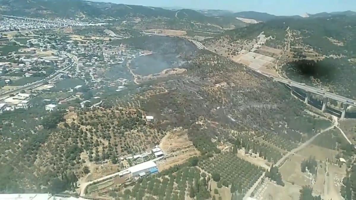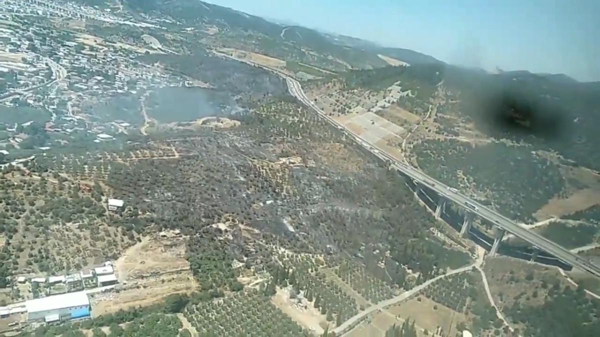 Termometrenin 37 dereceyi gösterdiği Bursa'nın Osmangazi ilçesi Demirtaş Mahallesi’nde zeytin ağaçlarının da bulunduğu makilik alanda, yangın çıktı.