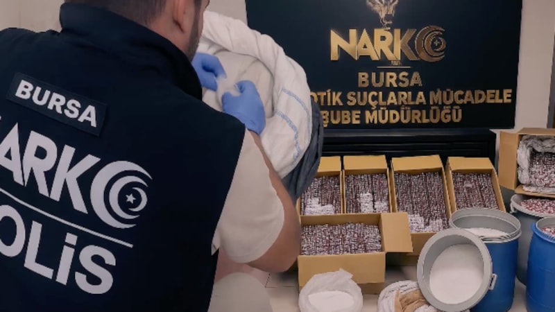 Bakan Yerlikaya, sosyal medya hesabından yaptığı açıklamada, Bursa'nın Orhangazi ilçesinde düzenlene operasyonda, 300 bin uyuşturucu hap ile 48 kilogram ham madde ele geçirildiğini ve 3 şüphelinin de gözaltına alındığını bildirdi.