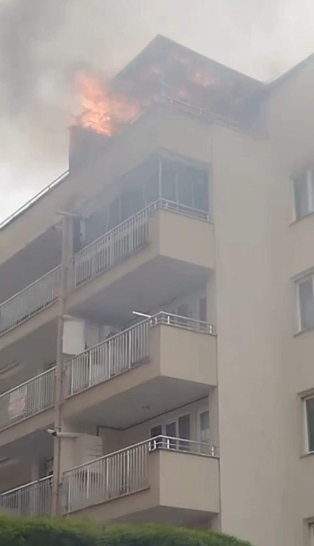 Bursa'nın Nilüfer ilçesindeki 5 katlı apartmanın çatı katında henüz belirlenemeyen bir nedenle yangın çıktı.