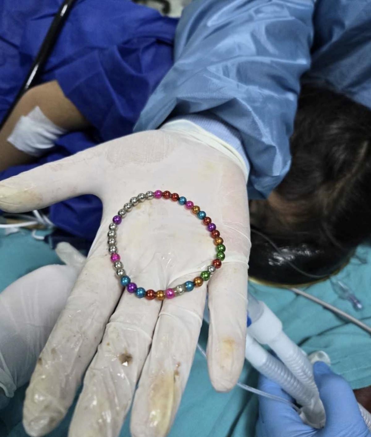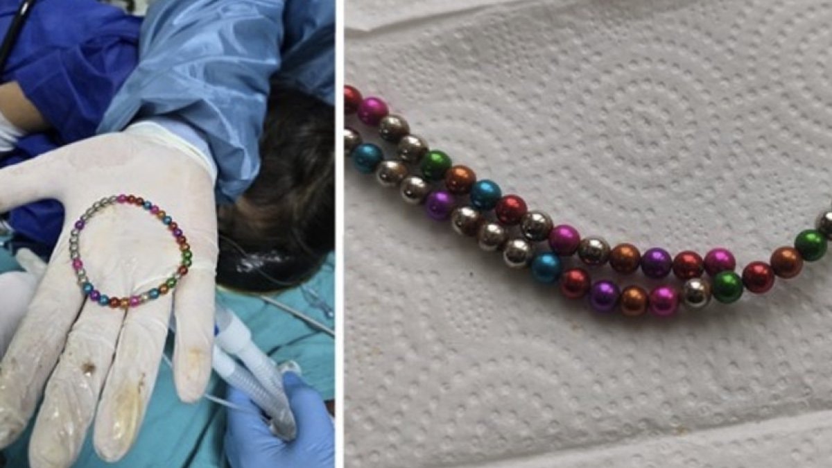 Bu cisimlerle alakalı çok sayıda olguyla karşılaşıyoruz. Hastamız da boncuk şeklinde, ufak da olsa kuvvetli çekim gücüne sahip neodimin dediğimiz maddelerden oluşan mıknatısları yutmuş. Bu mıknatıslar değişik sebeplerle toplumumuzda yaygın olarak bulunuyor. Bunların önemli bir kısmı oyuncak olarak bulunuyor ve bu oyuncaklarda maalesef küçük çocukların ellerine rahatlıkla geçebiliyor. Özellikle 5 yaşından küçük çocuklara bu tarz küçük cisimlerin verilmesini ve üzerinde takı olarak kullanılmasını bırakın etrafında bile olmaması gerekiyor.
