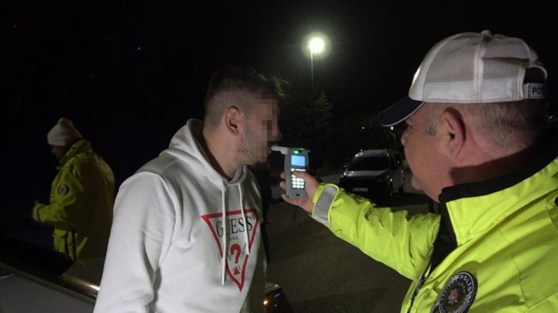 Alkollü olduğu halde direksiyon başına geçen bir sürücüyü uygulama noktasında durduran trafik polisleri, alkolmetre uzatıp üflemesini istedi.