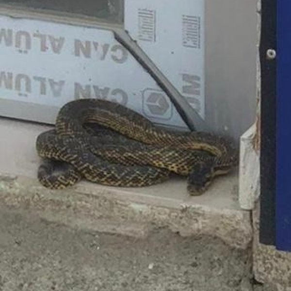 İŞ YERİNİN ÖNÜNDE 2 METRELİK YILAN BULDU