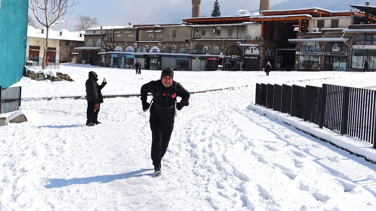 Bursa'da Atletizmci esnaf, işine koşarak gidiyor VİDEO