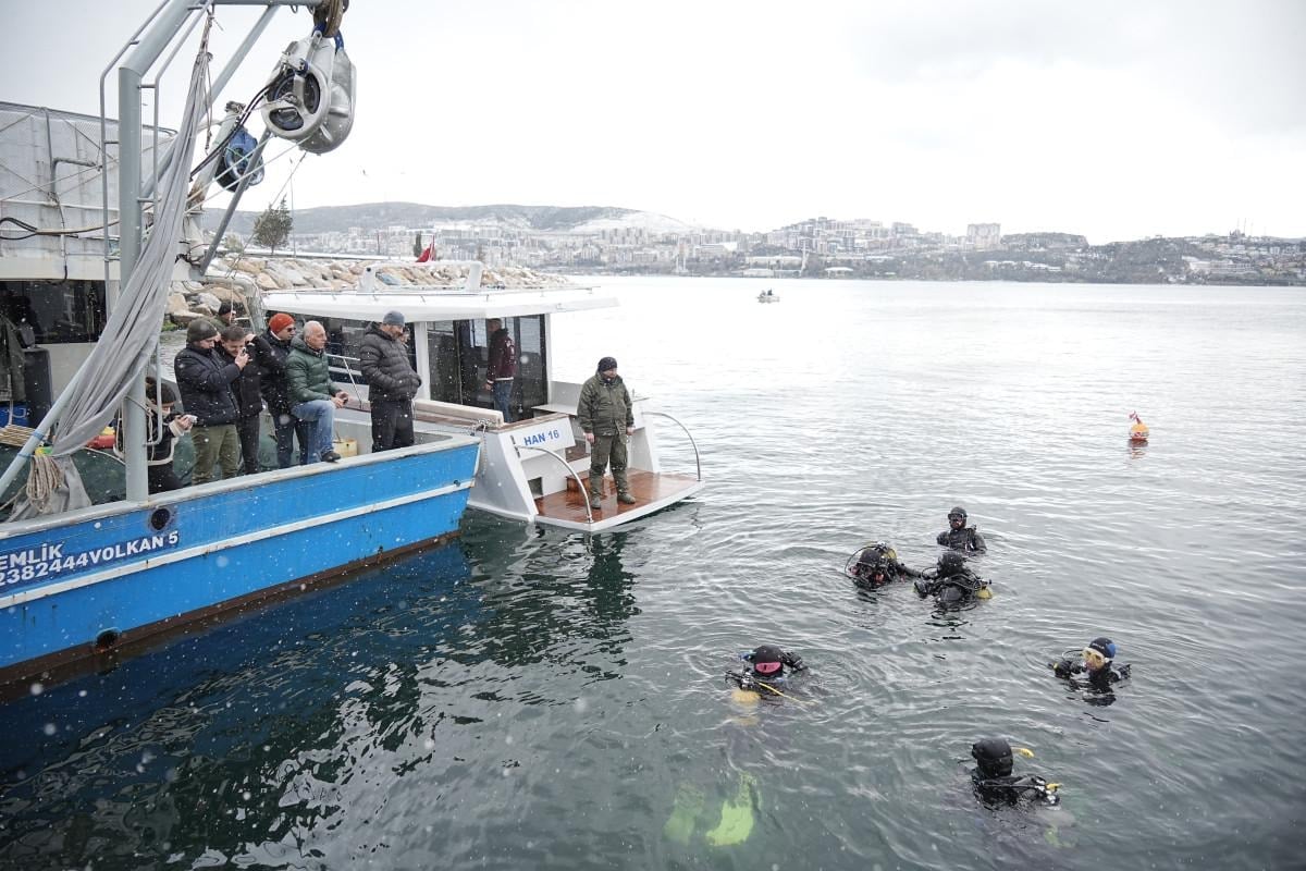 Gemlik limanından tekne ile denize açılan dalgıçlar, müsilajın yoğun olduğu bölgeden dalış yaptı.