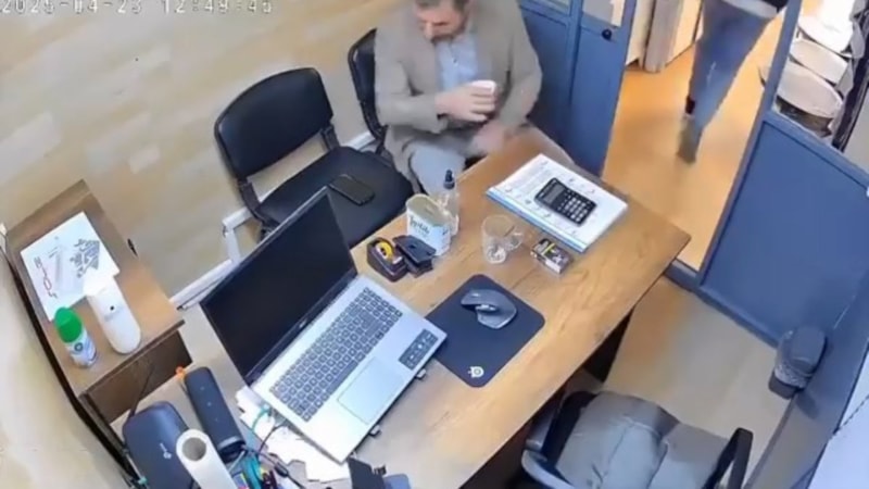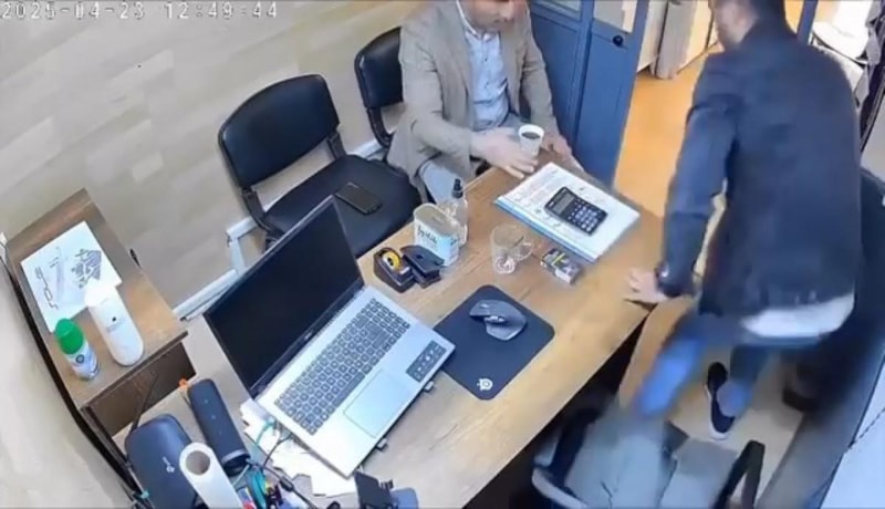 Kentte arkadaşını iş yerinde ziyarete giden bir kişi, sohbet edip çay içiyordu.