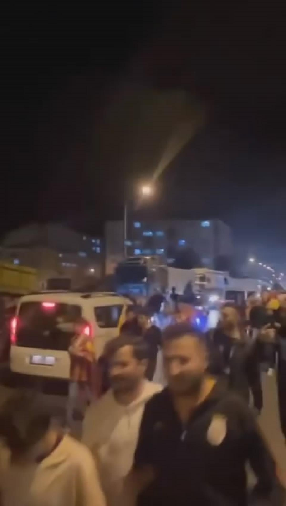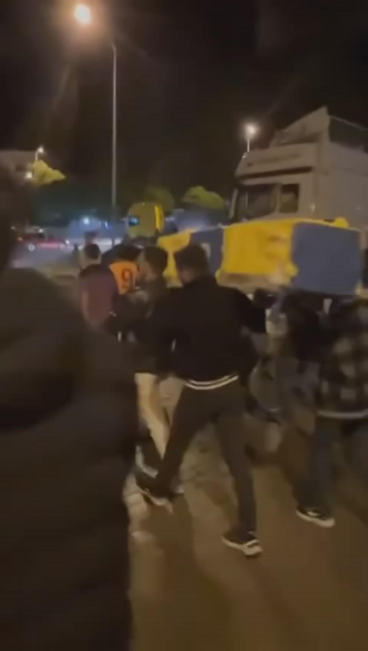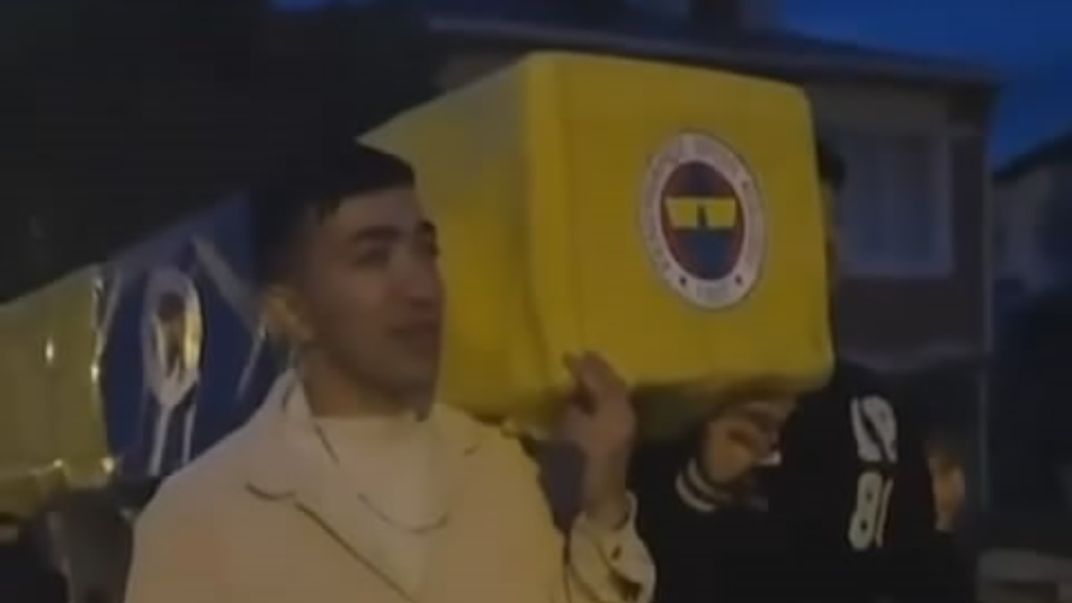 Öte yandan bir grup Galatasaray taraftarı, Fenerbahçe bayrağı ile örtülmüş boş tabutu omuzlarında taşıdı.