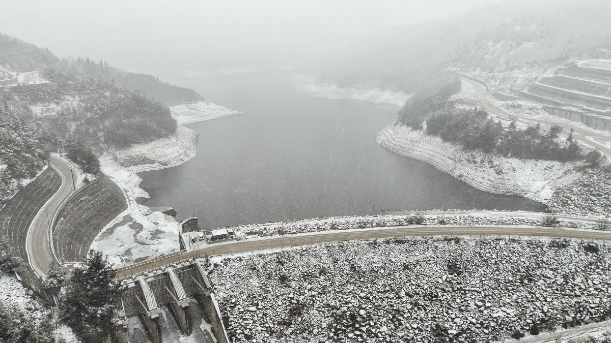 Doğancı Barajı çevresi beyaza bürünürken, her iki baraj havzasını besleyen yüksek kesimlerde de yoğun yağış olması, geleceğe dönük umut verdi.