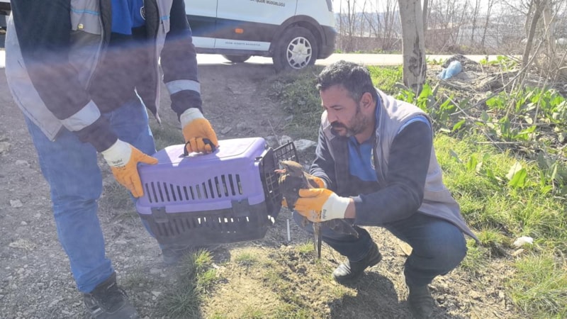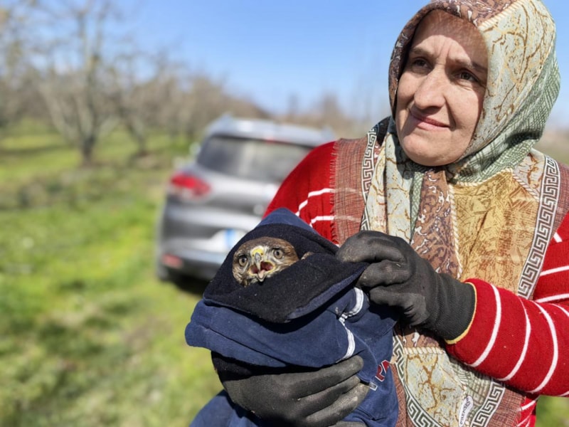 "Birkaç gündür görüyorduk. Tarlada çalışırken yeniden gördük. Uçmadığını görünce yakaladık. Ekiplere haber verdik. Gelip aldılar. Tedavi edecekler. Nesilleri tükenmesin hayvanlarımızın. Sahip çıkalım."