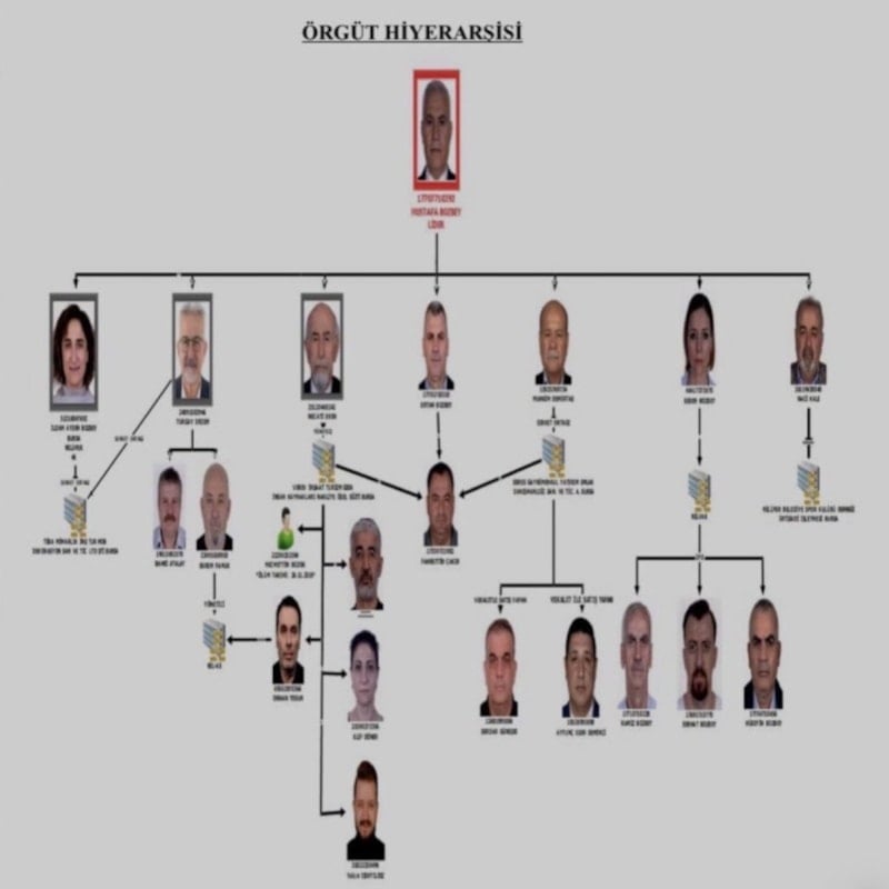 Şüphelilerin emniyet birimlerinde işlemleri devam ederken Bursa Cumhuriyet Başsavcılığınca, Mustafa Bozbey Suç Örgütü'ne karşı yürütülen soruşturmanın örgüt şeması ortaya çıktı.