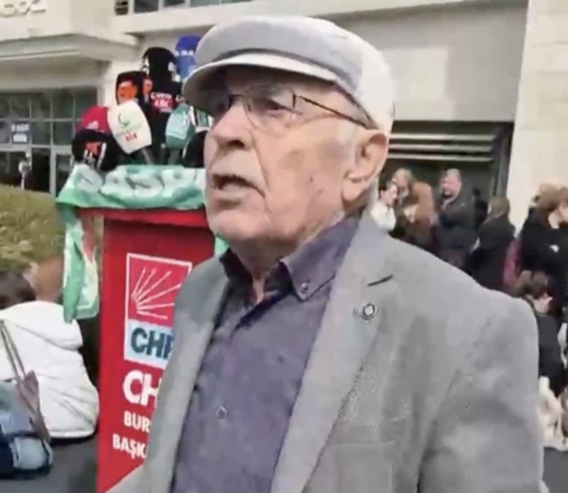 Yolsuzluk ve rüşvet soruşturması kapsamında gözaltına alınan CHP'li Bursa Büyükşehir Belediye Başkanı Mustafa Bozbey’e destek vermek için belediye binasına gelen yaşlı bir kişi, yolsuzluğa kılıf uydurarak peçeye ve İslami değerlere hakaret etmeye çalıştı.