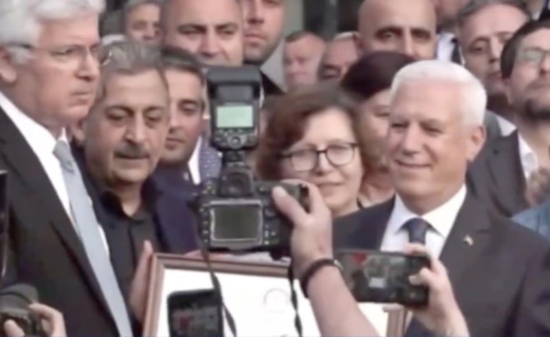 Bursa İl Seçim Kurulu Müdürü Mehmet Us, Bursa’da belediye başkanlığını kazanan Mustafa Bozbey’in mazbata töreninde amigoluk yaptı.