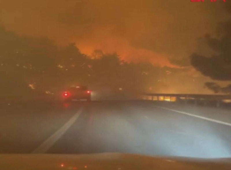 Yangın devam ederken, ekiplerin alevlerin arasından geçtiği görüntüler ortaya çıktı. Ekiplerin, "Buradan hızlı geçmek lazım. İnsan varsa dur al." dedikleri de duyuldu.