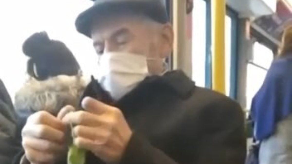 Kimliği belirlenemeyen aynı yaşlı amca yaklaşık bir ay önce de belediye otobüsünde görüntülenmiş, sosyal medyada yüzlerce yorum yapılmıştı.