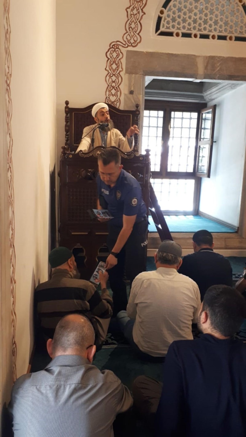 Yıldırım İlçe Emniyet Müdürlüğü ekipleri, bayram öncesi olası dolandırıcılık girişimlerine karşı cami, pazar ve sokaklarda vatandaşları tek tek uyararak broşür dağıttı.