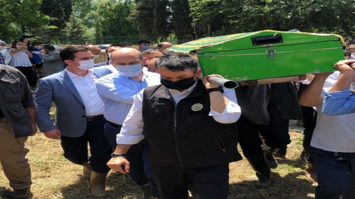 İçişleri Bakanı Süleyman Soylu ile Tarım ve Orman Bakanı Bekir Pakdemirli'nin de katıldığı cenaze namazında, yakınları gözyaşlarına boğuldular.