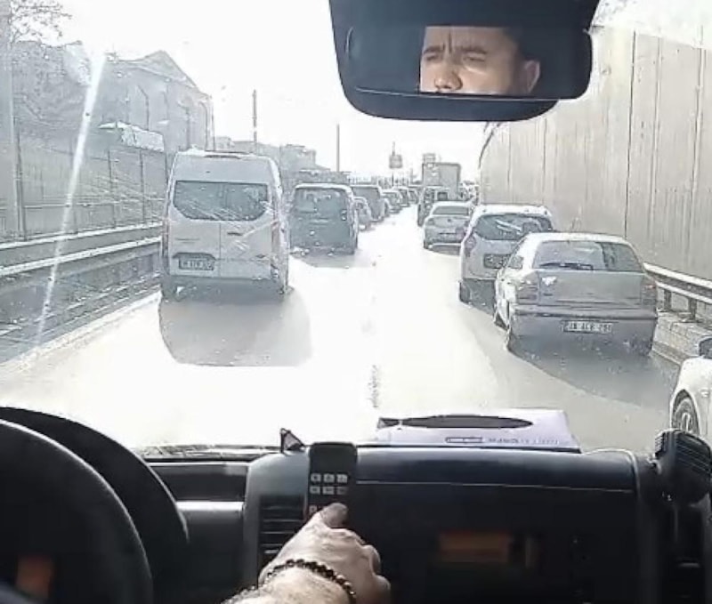 Yoğun trafiğe rağmen ambulans vakaya hızla hastaneye ulaştırırken, sürücülerin her geçen gün fermuar sistemini başarıyla uygulaması ambulans içerisindeki kameraya yansıdı.
