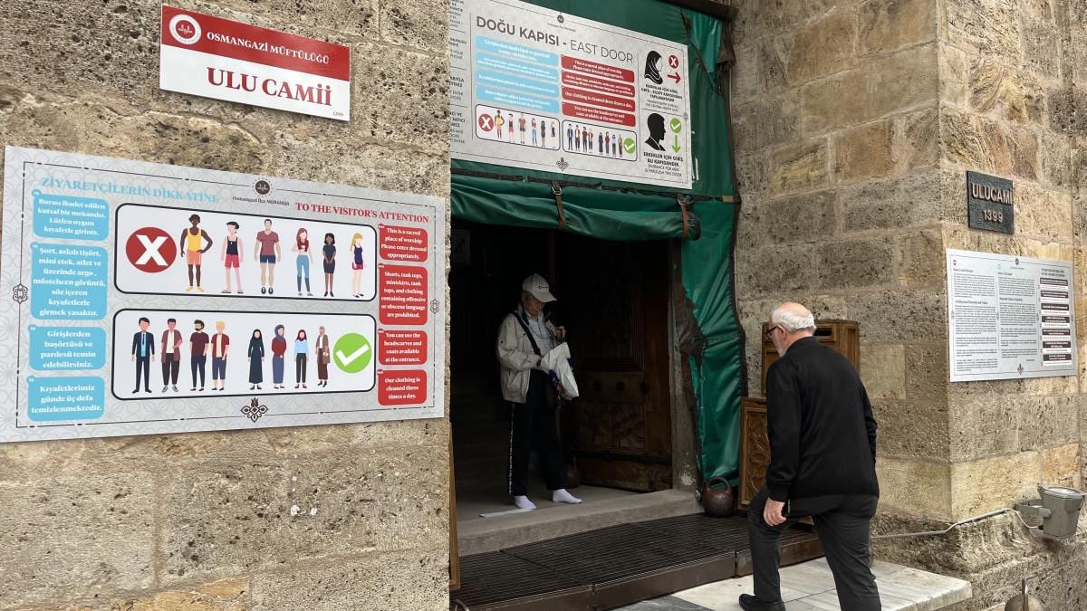 Türkiye genelinde yaşanan ve tepki çeken görüntüler üzerine Bursa'daki tarihi camilerde hem kadınlar hem de erkekler için ziyaret sırasında olması gereken kıyafetler, cami içerisindeki uyarı levhaları ve görevliler tarafından anlatılmaya başlandı.