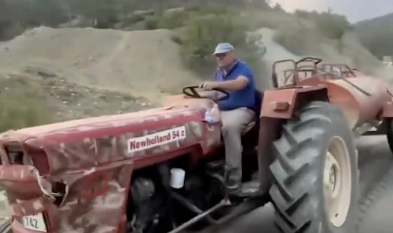Kentte, traktörünün lastiği patlamasına rağmen, yangın bölgesine su taşımaktan vazgeçmeyen bir vatandaş, Türkiye'nin orman yangınları felaketindeki özverili mücadelesini, gözler önüne serdi.