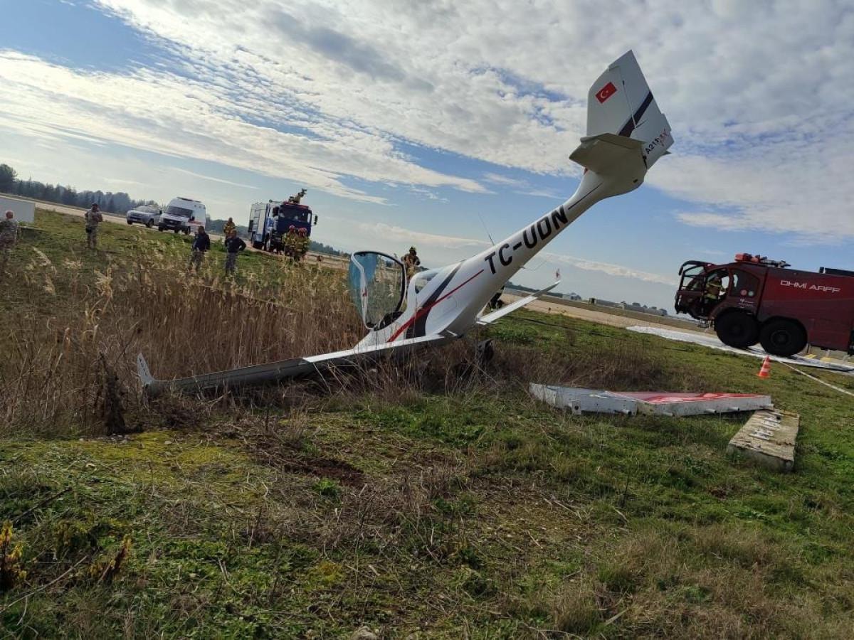 Özel uçuş okuluna ait eğitim uçağı, pisti terk ettiği esnada kaza kırıma uğradı.