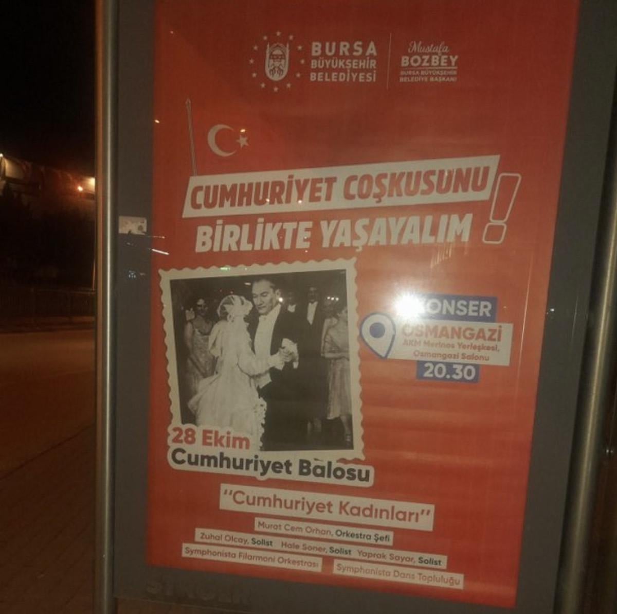 Bozbey, 28 Ekim'de düzenlenecek olan Cumhuriyet balosu için afişlerle şehirde tanıtım yaptırmaya başladı.