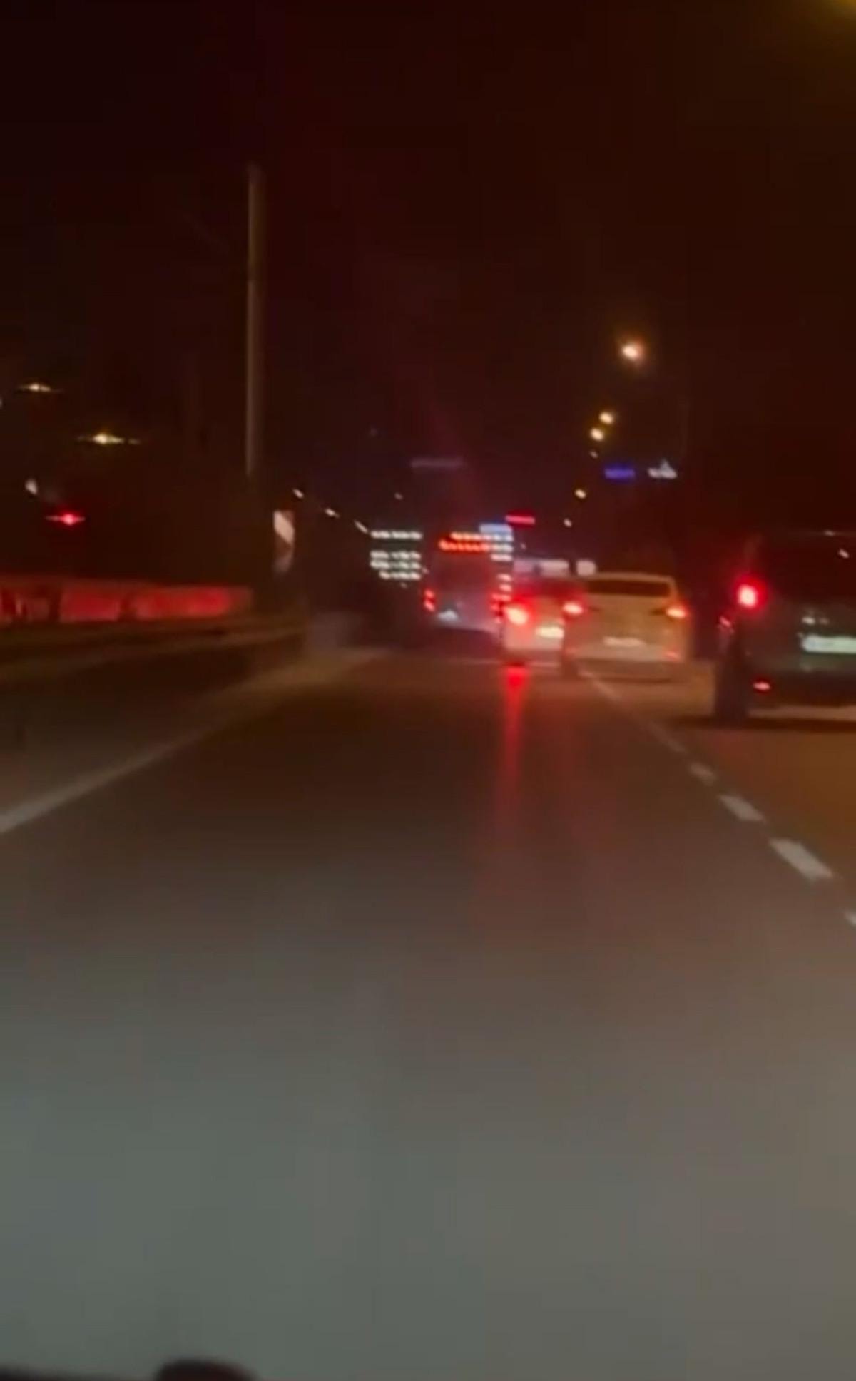 Olayı başka bir araçtan görüntüleyen kişi, sürücülerin klakson çalarak tepki gösterdiğini kayda aldı.