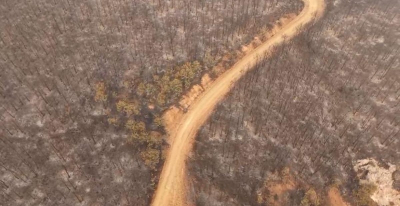 YANGINDAN GERİYE KALANLAR HAVADAN GÖRÜNTÜLENDİ