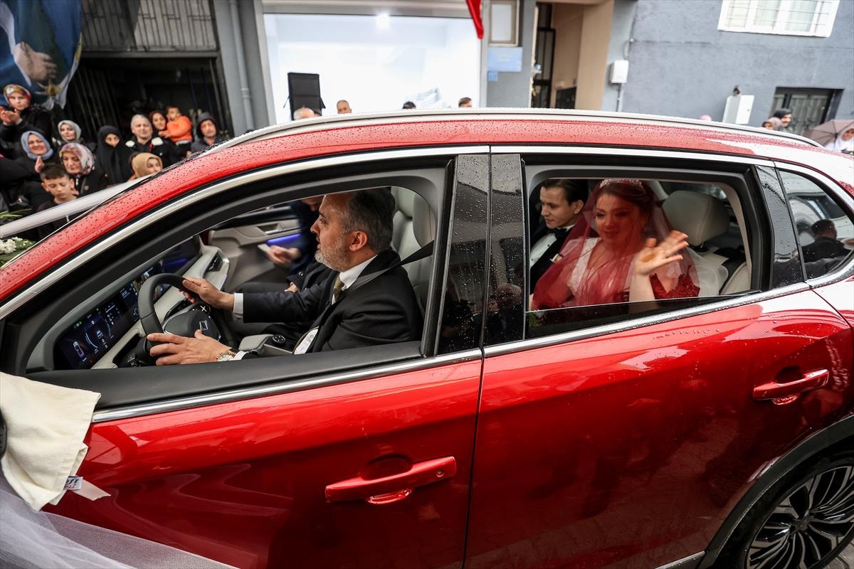 Düğünde "Anadolu kırmızısı" Togg gelin arabası yapıldı. Bursa Büyükşehir Belediye Başkanı Alinur Aktaş, bir çiçekçiye Togg'u süsleterek gelin arabası yaptı ve direksiyona geçti.