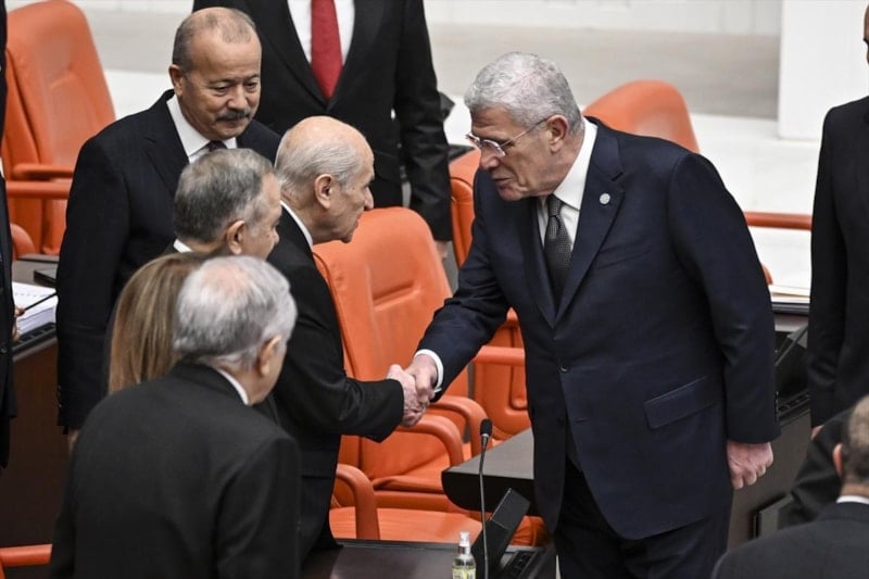 Görüşme öncesi İYİ Parti Genel Başkanı Müsavat Dervişoğlu, MHP lideri Devlet Bahçeli'nin ayağına gitti.