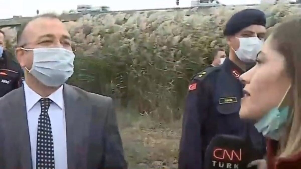 Sahadan bilgi paylaşımı yapmak üzere alana gelen CNN Türk muhabiri, yaralı pilotun Çam ve Sakura Şehir Hastanesi'ne kaldırıldığı bilgisini aktardıktan sonra Büyükçekmece Kaymakamı'nın da alanda bulunduğunu söyleyerek kaymakama mikrofon uzattı.